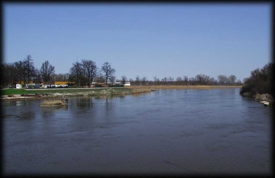 Tytuł zdjęcia: na Odrze- widać fragment starego jazu Opatowickiego