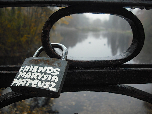 Warszawa. Kłódka na mostku w Parku Ujazdowskim.