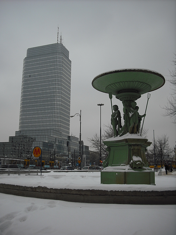 Opis: Młodsza siostra wodotrysku Marconiego z Ogrodu Saskiego. Zaprojektowali ją Józef Orłowski i Alfons Grotowski, a rzeźby wymodelował Leonard Marconi. Fontanna była dwukrotnie przenoszona. W 1866 r. stanęła na skwerze przy Krakowskim Przedmieściu. Kilkadziesiąt lat później przeniesiono ją na Plac Bankowy. W 1952 r. fontannę ustawiono przed kinem Muranów.