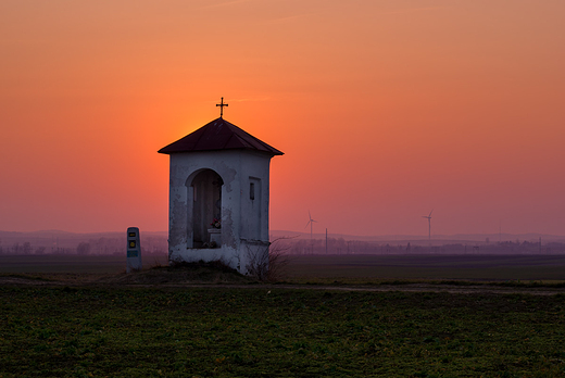 Mamy XXI wiek w oddali za kapliczką stalowe wiatraki które tak pasują do naszego krajobrazu jak wół do karety.........