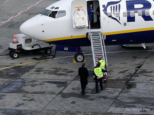 Opis: Przywitanie pierwszego samolotu przewoźnika Ryanair we Wrocławiu.