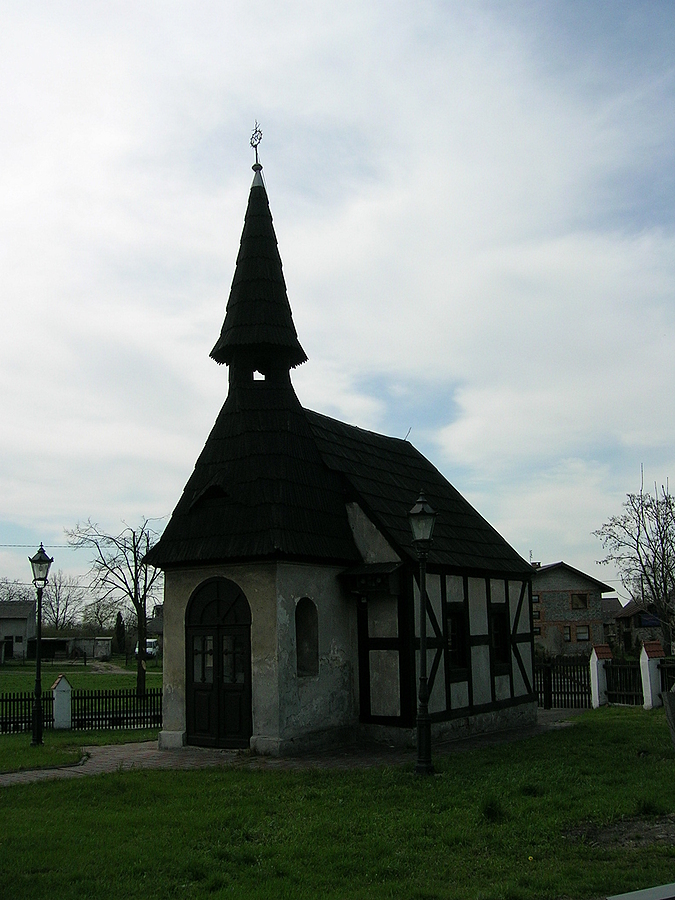 Opis: Budowla typu szachulec - konstrukcji słupowo - ramowej. Orientowana. Do 1906 r. pełnila rolę świątyni. W kruchcie na ołtarzu znajduje się figurka Jana Nepomucena. Kaplica na cmentarzu parafialnym naprzeciw kościoła.