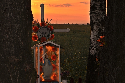 Opis: Kapliczka znajduje się tuż przy lesie, na rozstaju polnych dróg. Wygląd raczej współczesny, choć wielkość otaczających ją drzew sugeruje, że musiała w tym miejscu być ufundowana dużo wcześniej.