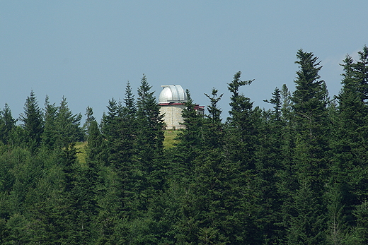Opis: Podchodząc pod Obidowiec warto chwilę przysiąść na ławeczkach przy rozstaju szlaków i pokontemplować okolicę. Pięknie prezentuje się jedyne w Polsce górskie obserwatorium astronomiczne. Wybudowane w 1986 r. jest własnością WSP w Krakowie, od początku lat dziewięćdziesiątych włączone zostało do światowej sieci obserwatoriów tworzących tzw. teleskop globalny, dzięki której obiekty na niebie mogą być śledzone przez 24 godziny na dobę.