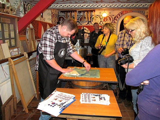 Opis: Żeby poznać tajniki produkcji papieru czerpanego trzeba się wybrać do muzeum w Grębocinie koło Torunia. Tam nie tylko można obejrzeć maszyny drukarskie sprzed lat, ale i dowiedzieć się nieomal wszystko o papierze, a nawet samemu wyprodukować kartkę papieru czerpanego.
