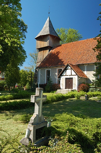 W jej centrum zachował się przepiękny barokowy kościół ewangelicki z 1770 r. z drewnianą wieżą (pozostałość po poprzednim drewnianym kościele z 1685 r.). Jest to jeden z ostatnich przykładów ludowego budownictwa sakralnego na Mazurach. Kopia wieży tutejszego kościoła została odtworzona w skansenie w niedalekim Olsztynku przy kościele z Rychnowa.