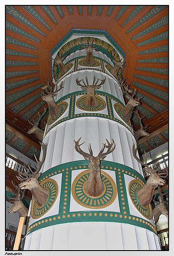 Tytuł zdjęcia: Antonin - Pałac myśliwski książąt Radziwiłłów, ozdobna kolumna - komin podtrzymująca strop
