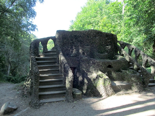 Opis: W pierwszych latach XX wieku tej groty (na zdjęciu) na szczycie kaskady w Parku Miejskim na Bydgoskim Przedmieściu w Toruniu, jeszcze nie było. Powstała w nieco późniejszych latach, ale do dziś jest elementem, który nie tylko upiększa ten toruński park, ale przyciąga do siebie spacerowiczów i to bez względu na ich wiek, a przy tym dodaje temu miejscu tajemniczości. W dole za kaskadą są dwa stawy (na zdjęciu niewidoczne) jeden mały tuż pod grotą, drugi duży z fontanną i domkiem pośrodku; to na tym stawie kiedyś pływały piękne i dostojne łabędzie, ale od kilku już lat ich nie ma. Wielka szkoda!