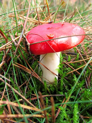 Opis: Ten grzyb (na zdjęciu), choć ładnie prezentuje się w leśnej ściółce, chyba lepiej, żeby nie wylądował na talerzu.