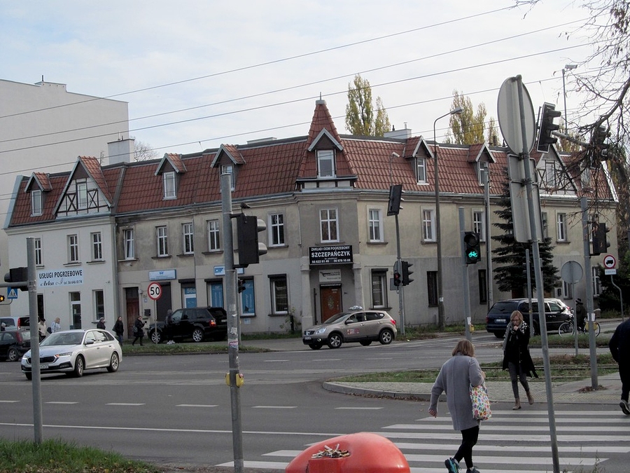 Opis: Na rogu ul. Kościuszki 56 i ul. Batorego w Toruniu stoi ciekawa wielorodzinna kamienica jednopiętrowa z użytkowym poddaszem (na zdjęciu). Parter od strony ul. Kościuszki zajmuje na swoje potrzeby zakład pogrzebowy. Obiekt zbudowany został prawdopodobnie na przełomie XIX i XX wieku.