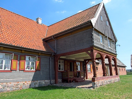 Opis: Ten budynek (na zdjęciu) zbudowany został w 1757 r. we wsi Kaniczki w woj. pomorskim w powiecie kwidzyńskim w gminie Sadlinki, ale obecnie znajduje się na terenie Olenderskiego Parku Etnograficznego w Wielkiej Nieszawce koło Torunia i jest jednym z ostatnich podcienionych domów zachowanych na terenie Doliny Dolnej Wisły.